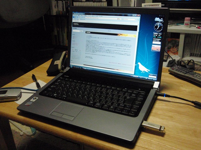 購入動機は、表向きは「自分を焚きつけて小説を書くのだ。だだだだ」で、真相は会社の忘年会で恒例となっているビンゴの一等がモバイルPCだったんだけど、トリプルリーチまでいったにも関わらずもらえなかった腹いせ。脊髄反射で注文した。